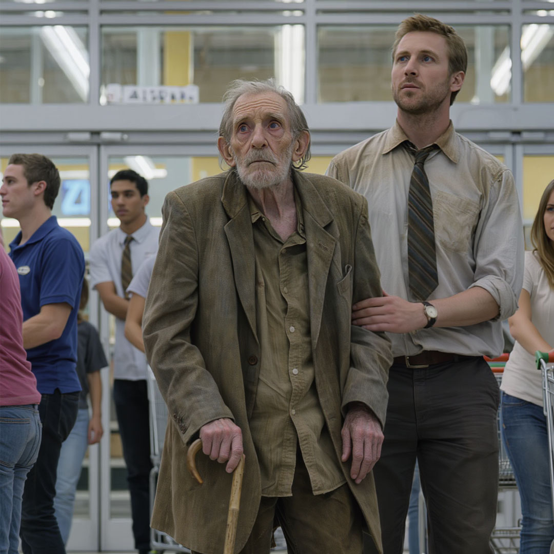 Alors qu’il erre entre les allées, un jeune employé d’une vingtaine d’années, Malik, s’approche de lui avec bienveillance :