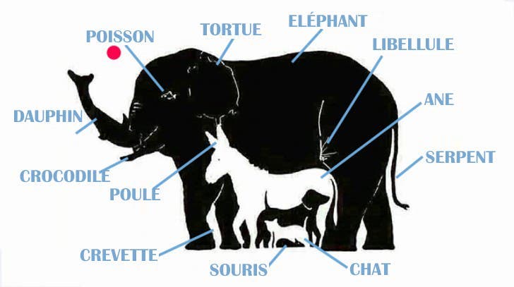 Une image particulièrement surprenante circule en ce moment sur le web et défie même les plus attentifs. Au premier coup d’œil, on distingue souvent cinq animaux : un éléphant, un âne, un chien, un chat et une souris. Mais saviez-vous que ce dessin cache en réalité pas moins de treize créatures ?