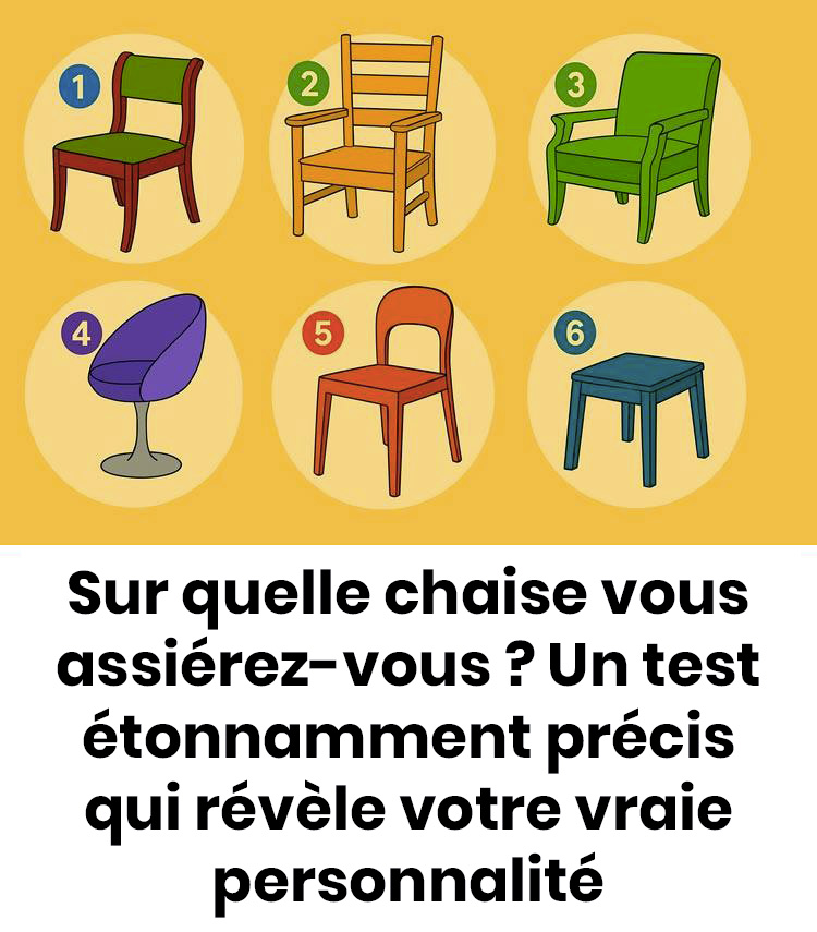 Enfin, si la sixième chaise vous a paru la plus accueillante, vous incarnez probablement la stabilité et le goût d’une vie harmonieuse. Les grandes aventures ne sont pas indispensables à votre bonheur : un quotidien bien organisé, des relations sincères et des réalisations concrètes vous comblent amplement. Vous inspirez confiance, faites preuve de discrétion et d’une fidélité sans faille. Une perle rare pour ceux qui ont la chance de vous connaître et de vous compter parmi leurs proches.