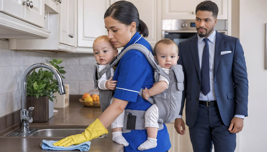 Tout a commencé par un cri inattendu. Thomas Reynaud, un entrepreneur parisien reconnu, est entré dans la chambre de ses jumeaux pour découvrir Claire Martin, la femme de ménage fraîchement embauchée, qui chantonnait doucement tout en nettoyant. Les bébés, un endormi sur son dos et l'autre gazouillant joyeusement contre elle, étaient enfin calmes après des mois de pleurs incessants.