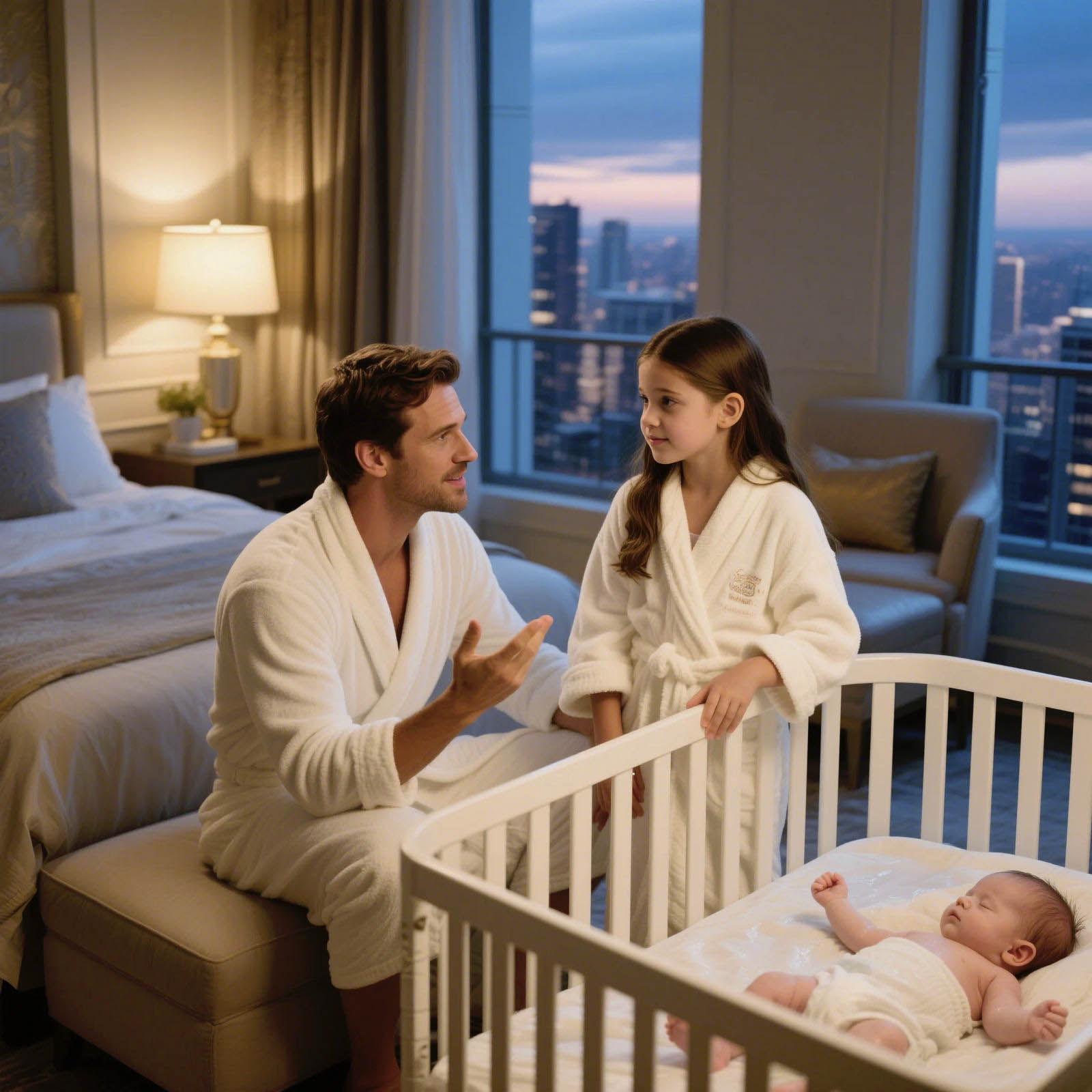 Cette même nuit, après un bain réparateur et un repas chaud, Marc entra dans la chambre où Camille, enveloppée dans un peignoir douillet, veillait sur le sommeil de Léo.